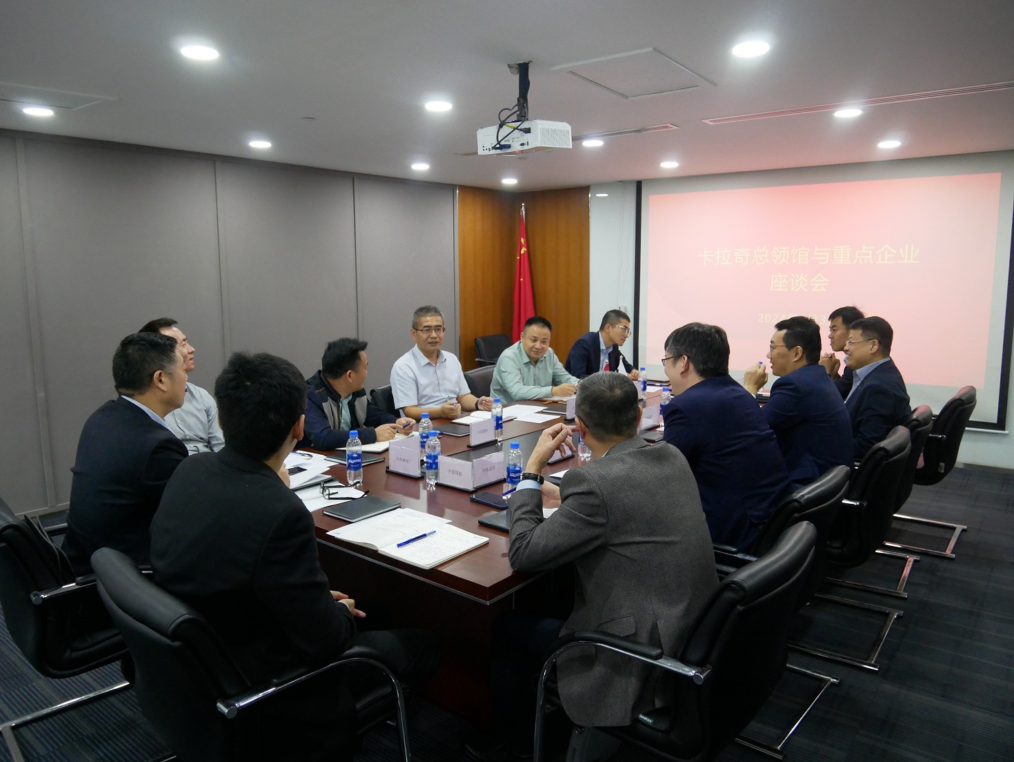 2024年1月3日,李勇参赞出席全巴中资企业协会卡拉奇分会新年座谈会,听取协会成员企业安全管理、生产经营和员工队伍建设等方面情况汇报并表示,第三届分会在总领馆经商处指导下积极担当作为,做了大量工作,下一步要继续发挥牵头引领作用,在推动业务交流、加强安全防范、关心关爱员工等方面做出更大成绩。分会领导单位中国银行卡拉奇分行、工商银行卡拉奇分行、中港控巴基斯坦公司、中电胡布公司、中港湾巴基斯坦分公司以及部分会员企业负责人参会。我处郑超领事参加。